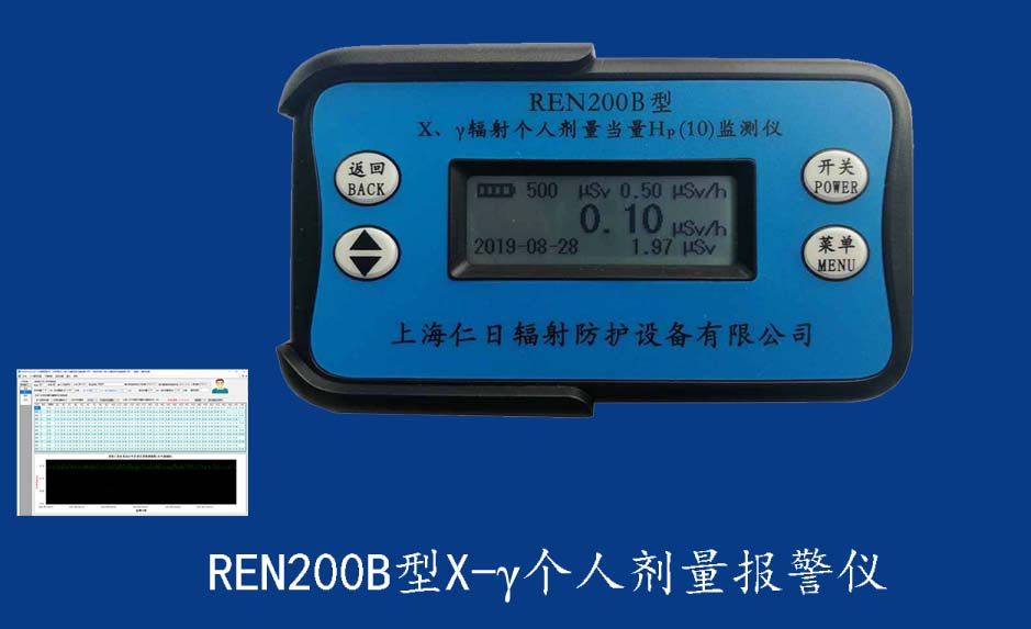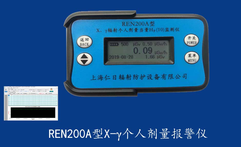 REN200 X-γ輻射個人報警儀 REN200型X、γ個人劑量報警儀(又叫X、γ輻射個人劑量當量HP(10)監測儀)內置高靈敏度蓋格計數管為探測器,主要用來監測各種放射性工作場所的X、γ以及硬β射線的輻射,具有響應快,測量范圍寬的特點。能顯示工作場所的劑量當量率和累積劑量,更換電池時,日期及累積數據能永久保存。可選配RenRiPersonal個人劑量管理軟件,該軟件可存儲多個人的歷史數據,能記錄日累積、月累積、年累積、輻照時長、計算平均劑量率、扣除或不扣除本底輻射,且以文字和圖譜的方式展現數據。廣泛應用于核電站、加速器、鋼鐵、化工、同位素應用、醫院、工業X、γ無損探傷、放射醫療、鈷源治療、γ輻照、放射